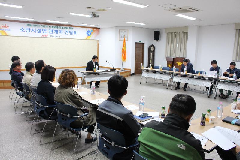 경주소방서(서장 류수열)는 29일 11시 본서 대회의실에서 부실 공사·감리 등을 사전에 방지하고 건실한 업체 육성을 도모하기 위한 소방시설업 관계자 간담회를 실시하였다. 이날 간담회는 공사업, 설계업, 감리업 등 총 33개소 대표자가 참석하였으며, 주요내용으로는 화재예방 등 소방안전고나리 전도사 역할 당부, 소방·방화시설의 완벽한 설계·시공 및 철저한 감리 수행, 자체점검 시 면밀한 점검으로 소방사각지역 발생방지 협조 등 이다 또한 산업현장에서 느끼는 불편 및 제도개선 건의사항 청취을 청취하면서 이야기하는 시간을 가졌다. 양경홍 예방안전과장은 “상호정보 교류를 통한 소방시설업의 발전방안을 모색하고 소방시설업체와의 대화행정을 통한 신뢰를 구축하는 자리가 되길 바란다”고 전했다. // 김희철 기자
