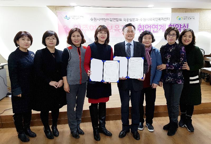 [미디어타임즈= 김광한 기자] 수원시외국인복지센터와 수원시 어린이집연합회 국공립분과가 외국인 여성의 취업을 돕기 위해 손을 잡았다.