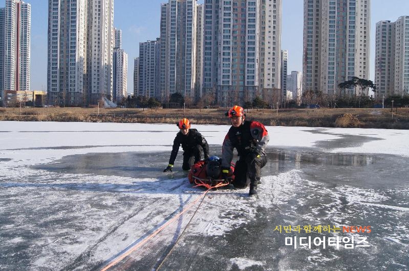 | 동계 수난사고 대응능력 향상을 위한 인명구조훈련 사진. <ⓒ미디어타임즈> |
