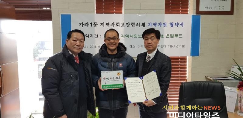 | 가좌1동 지역사회보장협의체, 온맘푸드와 지역 자원 협약 체결 사진. <ⓒ미디어타임즈> |