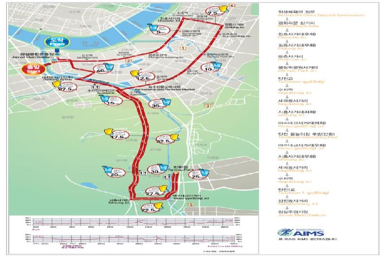 | 마라톤 풀 코스(42.195㎞) : 잠실종합운동장 ↔ 성남탄천물놀이장 인근 |