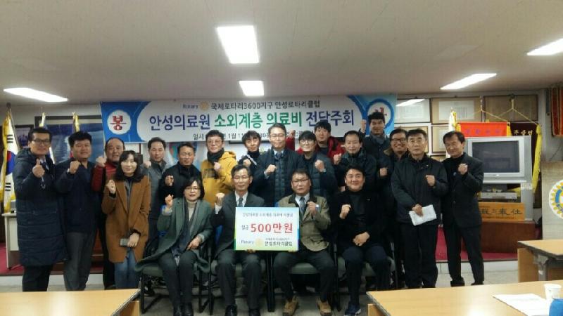 안성 로타리클럽은 실직 등 갑작스러운 위기 사유로 몸이 아파도 도움받을 길이 없어 치료 받지 못하는 대상자가 늘어나고 있다는 안타까운 사연을 접한 뒤 매년 안성병원에 의료비를 후원하고 있다.