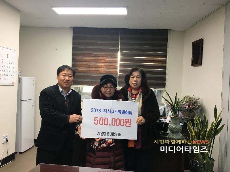| 계양3동 채영숙 씨, 2018년 적십자 특별회비 기탁 사진. <ⓒ미디어타임즈> |