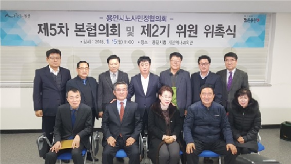 | 용인시노사민정협의회 제2기 위윈 위촉식후 기념촬영 장면사진. |