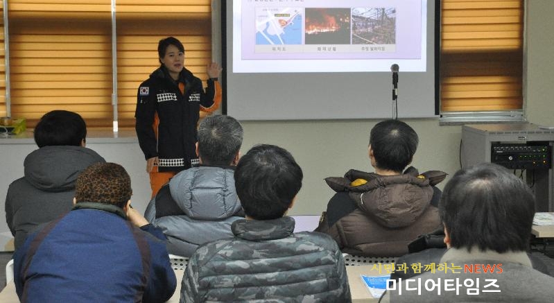 [미디어타임즈=문상수 기자] 인천남부소방서(서장 류환형)는 화재가 많이 발생하는 겨울철 화재안전을 위해 15일부터 5일간 관내 전통시장에 대해 찾아가는 간담회 및 소방안전교육을 운영한다고 전했다.이번 간담회 및 소방안전교육은 15일 용남시장을 시작으로 석바위시장, 신기시장, 용현시장, 토지금고시장 총 5개 시장의 상인회 및 임원을 대상으로 ▲겨울철 화재발생 방지를 위한 소방안전교육 ▲전통시장 화재안전관리 강화 대책 추진내용 설명 ▲방화천막, 자동화재속보설비 설치 및 화재안전조례 개정협의 등을 중점내용 실시한다.소방서 관계자는 “전통시장은 화재 발생 시 큰 피해가 발생할 우려가 있다. 간담회 및 소방안전교육을 통해 시장 관계자와의 협력관계를 유지하고 관계자들의 화재 예방에 대한 관심 증대로 시장 안전을 위해 적극 협조바란다.”고 전했다.