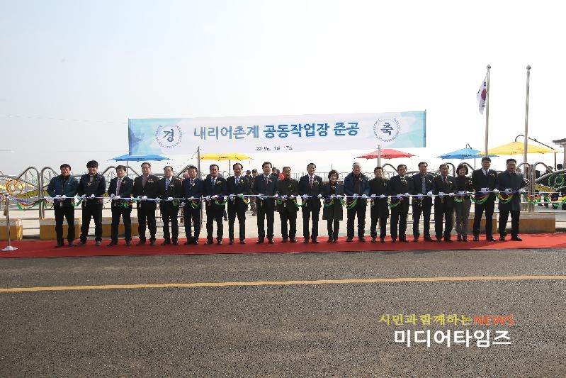 [미디어타임즈=문상수 기자] 인천광역시 옹진군은 영흥면 내리어촌계 공동작업장 준공식을 17일 개최했다. 이날 행사에는 조윤길 옹진군수를 비롯해 군 의원, 어촌계장, 어업인 등 50여명이 참석한 가운데 준공식을 가졌다.영흥면 내리어촌계 공동작업장은 총 사업비 4억7천만원을 들여 735.2㎡(약223평)면적의 공동작업장 시설과 작업장 내 간판, 파라솔, 세족장 등 부대시설을 지원한 사업으로, 평상시에는 어업인들의 안전한 어업활동을 지원하고 체험어장 관광객들의 편리한 쉼터기능을 할 것으로 보인다.옹진군 관계자는 “금회 내리어촌계 공동작업장 시설로 인해 어업인 바지락, 굴 채취 작업 편의는 물론 갯벌 체험객들이 공동으로 이용함에 따라 어촌관광 활성화에 크게 기여할 것으로 사료되며 앞으로도 어촌관광산업과 수산업에 많은 지원을 통하여 어업인 소득증대에 최선의 노력을 다할 것”이라 말했다.