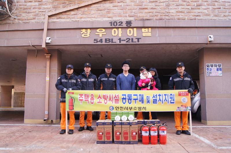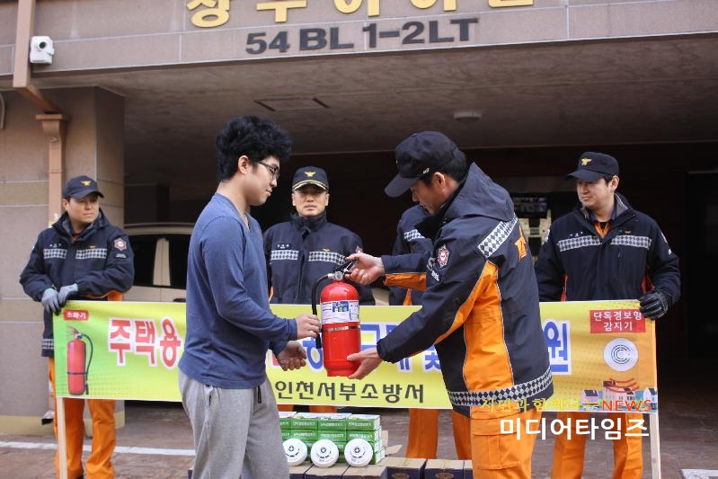 [미디어타임즈=문상수 기자] 인천서부소방서(서장 김준태)는 지난 15일 서구 마전동, 창우아이빌 16가구를 대상으로 주택용 소방시설(소화기 및 단독경보형감지기) 공동구매 및 설치지원을 실시했다.주택용 소방시설인 소화기와 단독경보형감지기는 아파트를 제외한 일반주택 등에 의무적으로 설치해야 한다.이에 인천서부소방서에서는 일반시민을 대상으로 전방위 홍보중에 있으며, 특히 서구 구정소식지 및 이․통장을 대상으로 홍보를 중점 추진하고 있다.이번에 보급된 주택용 소방시설은 구정소식지를 보고 구매의사를 밝혀 서부소방서에서 시중에서 판매되는 가격보다 저렴한 가격에 공동구매 및 설치지원하고, 또한, 주택용 소방시설 사용법 및 관리요령교육까지 실시하여 지역 주민들이 매우 만족하는 것으로 알려졌다.소방서 관계자는 “주택용 소방시설은 화재발생 시 우리 가족의 생명과 재산을 지켜줄 수 있다”며 “앞으로도 홍보와 공동구매 및 설치지원을 지속적으로 실시하겠다”고 말했다.