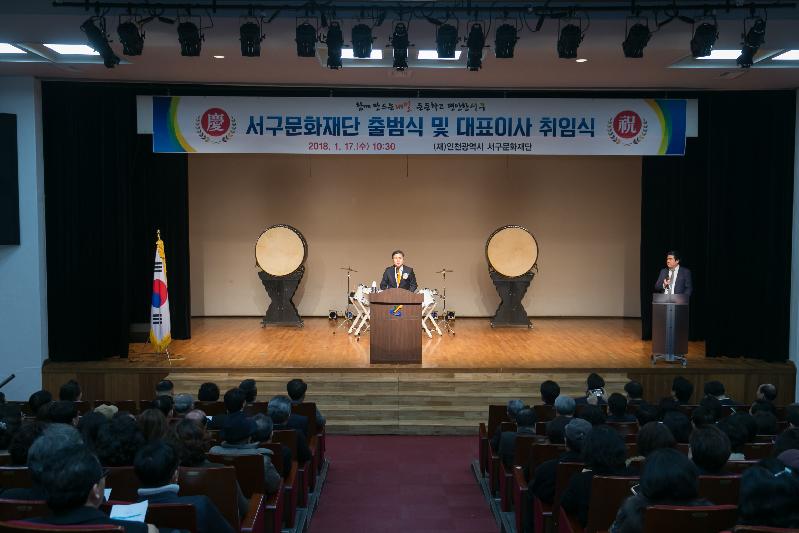 [미디어타임즈=문상수 기자] 인천시 자치단체 중 2번째로 설립되는 서구문화재단이 지난 17일 출범식을 갖고 본격적인 업무를 시작했다.서구문화재단은 ‘문화로 사람이 아름다운 서구’ 조성을 위해 서구예술인 활동지원, 서구문화회관 운영, 예술교육, 생활문화 활성화 지원, 발전 전략 수립 등 서구의 문화예술발전을 위한 업무전반을 관장하게 된다. 이날 출범식에는 재단 이사장인 강범석 서구청장, 심우창 서구의장을 비롯해 구의원과 국회의원, 지역 인사들과 함께 문화예술기관, 관련학과 교수, 단체장 등 다양한 인사 200여 명이 참석했다. 서구는 인구수가 50만 명을 돌파하면서 구민의 문화복지 증진, 문화예술향유기회 확대, 문화예술발전을 위한 중장기 정책개발 등 서구 문화예술에 대한 체계적인 발전을 도모하고, 문화예술 컨트롤 타워역할을 할 수 있는 전문성을 갖춘 문화재단 설립의 필요성이 대두되어 왔다. 이에 따라 지난 2016년 4월에 재단설립 기본계획을 수립하고 주민 공청회 등을 거쳐 지난해 10월에 법인 승인을 받는 등 3년여의 준비과정을 거쳐 출범하게 됐다. 서구문화재단은 지난해 10월에 비상임 이사 12인, 감사 2인, 11월에 대표이사를 선임했으며, 12월에 직원을 공개모집해 이사장(강범석 구청장), 대표이사(이종원)와 1국 4팀 26명으로 구성됐다. 이종원 초대 대표이사는 한국문화예술위원회에서 25년간 근무한 현장 전문가이며 아르코예술극장장, 대학로 예술극장장, 세종대학교 문화예술경영학과 초빙교수, 충남문화재단 대표이사를 거친 예술학 박사로 현장경험과 이론을 겸비한 문화예술경영계의 손꼽히는 전문가이다. 서구문화재단은 서구 문화발전 중장기계획 수립, 예술인(단체) 지원, 구립 예술단 운영, 서구문화회관 운영, 서구 문화대학 운영, 지역문화축제 발굴 및 개최, 지역문화 전문 인력양성 및 지원업무를 담당한다. 또한 다양한 계층의 예술교육 추진, 생활문화 진흥 및 지역문화 공동체 활성화와 다양한 문화예술 프로그램 발굴 및 실행, 지역문화진흥을 위한 연구 및 정책수립, 국공립 기관의 지원프로그램 확보와 공급 등 서구 구민을 위한 다양한 문화예술활동을 펼치게 된다. 문화예술에 대한 전문성과 자율성을 모토로 문화재단이 설립됨으로써 서구문화회관 등 서구 내의 문화예술 인프라의 효율적 활용과 문화예술 재원의 확대될 것으로 기대된다. 아울러 다양한 콘텐츠의 생산과 공급, 문화예술 향유와 참여기회의 확대 등 서구민의 문화권 확대와 서구의 문화예술이 획기적으로 발전할 수 있는 계기가 될 것으로 기대를 모으고 있다. 강범석 서구청장은 “국가 문화정책의 흐름 중 하나인 생활문화의 강화를 위해 다양한 지역의 요구와 특성에 맞는 사업의 발굴과 지원, 집행에 전문성을 갖춘 서구문화재단이 출범했다”며 “이제 막 걸음을 떼는 서구문화재단에 따뜻한 관심과 성원을 부탁드린다”고 말했다.
