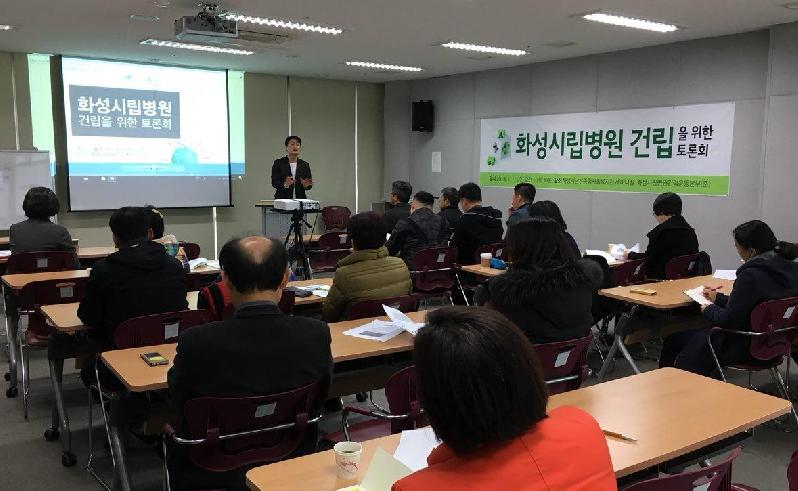 '화성시립병원건립운동본부(준)'는 17일, 향남읍 남부종합사회복지관 세미나실에서 토론회를 개최하고 '의료복지사각지대 화성서부권에 시립병원이 꼭 필요하다'는 공감대를 확인했다.