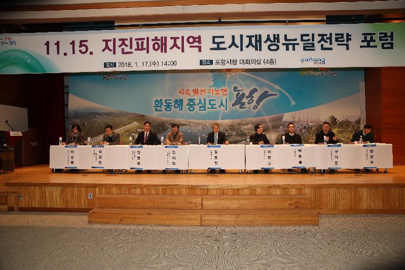 [미디어 타임즈 = 배수남 기자] 11. 15 지진피해지역 『도시재생 뉴딜전략 포럼』이 1월 17일 포항시청 대회의실에서 열렸다. 이날 토론자로 참석한 포항시의회 안병국 건설도시위원장은 먼저 피해지역 재건을 위한 특별재생지역 지원에 대한 법적 근거를 조속히 마련해 재난지역에 대한 지역주민의 안정을 조기에 정착할 수 있도록 국회나 중앙정부의 관심과 노력을 촉구했으며, 흥해지역의 부활을 위한 우리의 역할에 대해 의견을 제시했다. 그는 도시재생은 중·장기 사업으로 정답이 없다고 하면서 지역주민들의 역할을 높게 평가했다. 사업의 완성도를 높이기 위해서는 체계적 관리, 실현 가능성, 공감대 형성 등을 필수 요건으로 전제하며, 피해지역이 부흥할 수 있는 길로 가기 위해서는 계획부터 완성단계까지 이해관계인, 전문가, 시공사를 포함한 사업추진협의체를 반드시 구축해야 한다고 주장했다. 특히, “주민이 직접 참여해 지역 특성에 맞는 차별화된 콘텐츠를 발굴하고 재건을 위한 마스터플랜을 강조하면서 관(官) 주도의 사업계획은 반드시 지양해야 할 요건 중 하나”라고 덧붙였다. 지진의 악몽에서 벗어나 스마트도시를 건설하고 성공적인 재난지역의 도시재생 선도 모델로 만들기 위해서는 단순한 부동산 개발사업으로 흐르는 것을 사전에 예방하고 공공적인 측면을 강조한 추진 계획과 지역민들의 협력을 강조했다. 안병국 위원장은 도시재생전문가로서 다수의 포럼과 심포지엄에 참가했으며, 이번 도시재생뉴딜사업에도 자문역할을 하고 있다.