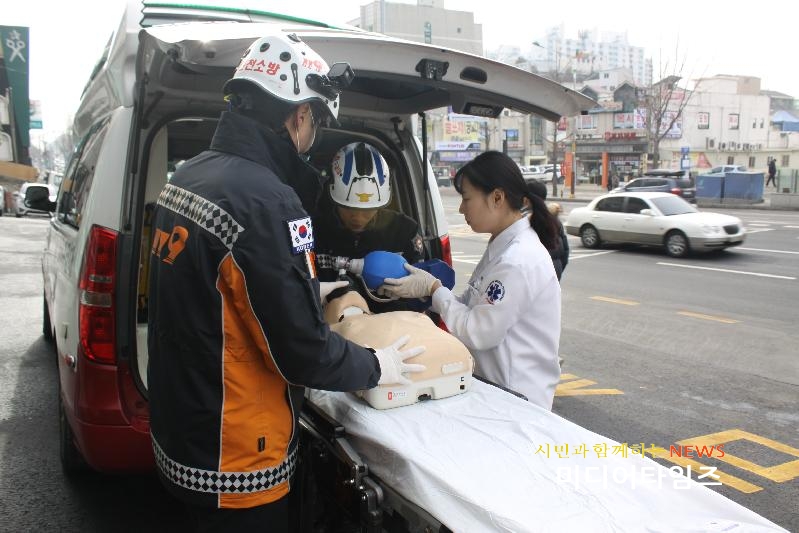 | 나도 미래 구급대원가천대학교 응급구조학과 학생 구급차량 동승실습(사진). <ⓒ미디어타임즈> |