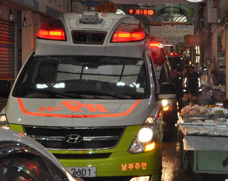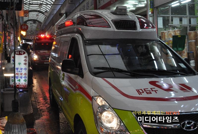| 석바위시장 소방차 출동로 확보 훈련 사진. <ⓒ미디어타임즈> |