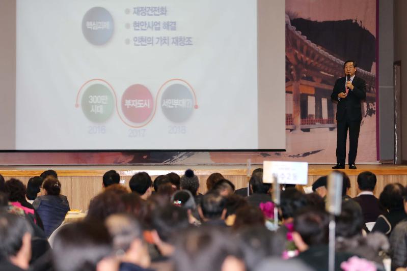 [미디어타임즈=문상수 기자] 인천 동구(청장 이흥수)는 19일, 유정복 인천시장과 동구주민이 함께하는 소통․공감을 통한 시민 행복행정 구현을 위한‘시민행복+ 대화’를 개최했다. 유정복 시장의 동구 방문은 동구 지역의 주요 현안을 파악해 해결방안을 모색하고, 시와 구간의 협조체계를 강화할 뿐만 아니라 주민들과의 대화를 통해 다양한 의견을 수렴하고자 마련됐다유정복 인천시장은 먼저 동인천역 북광장에 조성되어 주민들로부터 큰 인기를 끌고 있는 화도진 스케이트장을 방문해 주민들과의 소통의 시간을 가졌으며, 수문통로 가공선 지중화 사업 현장을 둘러보며 진행상황 및 문제점에 대해 청취하며 주민편의를 위한 원활한 사업 추진을 당부했다. 현장방문을 마친 후 유정복 인천시장은 주민행복센터에서 동구의 주요 역점사업과 현안 및 건의사항을 청취하는 시간을 가졌다. 구는 동구의 주요 역점사업인 ▲도시재생 뉴딜사업 ▲뉴스테이 주택재개발사업 ▲취약지구 도시재생 새뜰마을 사업 ▲동인천역 주변 정비사업 ▲만석동 십자수로 공유수면 매립 ▲복합문화체육센터 건립 ▲정비구역 내 공․폐가 정비사업 ▲배다리 우각리 근대문화길 조성 ▲유니세프 아동친화도시 조성 등에 대해 보고하고, 원활한 사업 추진을 위한 시와 구의 협조 체계 강화 및 관심을 이끌어냈다.또한 구는 동구발전을 위한 주민들의 ▲송림삼거리 교통체계 및 도로구조 개선 ▲열악한 교육환경 개선을 위한 교육경비 지원요청 ▲만석부두 선박수리업체 거첨도 이전▲수문통로 가공선 지중화사업 부족재원 지원 요청 ▲市 유형문화재인 창영초등학교 보수비용 등을 지원해 줄 것을 요청했다. 이후 동구 주민 300여 명이 참여한 가운데 주민행복센터 다목적강당에서‘애인(愛仁)과 함께하는 시민행복+대화’가 진행됐다. 유정복 인천시장은 신년인사 및 2018년도 시정운영 방향에 대해 설명하고, 애인(愛仁) 모두발언의 장으로 구민들과 격이 없는 대화를 이어나가며 구민과 심도깊은 논의를 통해 소통하는 시간을 가졌다. 유정복 시장은 “오늘 논의된 지역 현안사항 및 주민들의 건의사항을 적극적으로 검토해 주민불편을 최소화 하도록 노력하겠다”고 말했다.한편 구 관계자는 “이번 시민행복+ 대화에서 제시된 구의 주요 현안사항이 반영될 수 있도록 앞으로 시와 지속적으로 협의해 나가겠다”고 말했다.