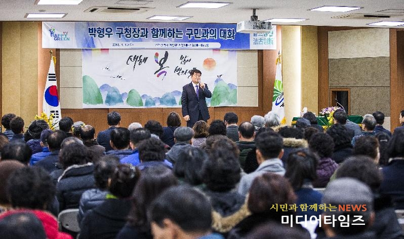 [미디어타임즈=문상수 기자] 박형우 계양구청장은 구민들의 다양한 의견을 수렴, 구정에 반영하여 소통행정을 구현하고 계양구의 미래 비전을 공유하기 위해 지난 12일 계산1․2동을 시작으로 18일까지 관내 12개 동을 권역별로 순회하는 구청장 동 방문 구민과의 대화를 성황리에 마쳤다.동 연두방문에서는 주민과 진솔하고 격의 없는 대화를 통해 주민의 작은 목소리에도 귀 기울여 구정에 반영하고 주민불편 사항은 바로 시정될 수 있도록 하는 데 목적이 있다.이번 구민과의 대화는 형식적인 행사나 절차는 지양하고 주민들과의 대화에 초점을 맞췄으며, 구정 현안 및 동 주요업무를 프레젠테이션으로 설명하여 주민의 이해를 높였다. 또한, 사회단체장은 물론 저소득층 주민, 장애인, 다문화가족, 일반 주민 등 다양한 계층의 주민을 초청하여 진솔한 주민의 의견을 청취했다.특히, 이번 주민과의 대화에서 건의된 65건의 건의사항은 바로 해당 실과로 전달되어 교통, 청소, 도로 등 생활불편 민원은 즉시 해소될 수 있도록 하였다.현장방문이 특히 요구되는 등산로 정비 및 운동시설 노후 교체, 경로당 시설 보수, 인도 보도블록 보수 등 10건의 건의사항에 대해서는 구청장이 직접 민원인과 함께 현장을 방문하여 의견청취 및 해결방법을 모색할 예정이며, 장기적인 계획과 예산이 수반되는 민원은 부서에서 적극적으로 검토하여 구정운영에 반영할 계획이라고 한다.박형우 구청장은 “이번 연두방문을 통해 접수된 의견은 아무리 작은 것이라도 귀 기울여 구정에 반영하고, 현장 중심의 소통행정을 통해 구민의 불편을 줄이기 위해 노력하겠다”고 밝혔다.