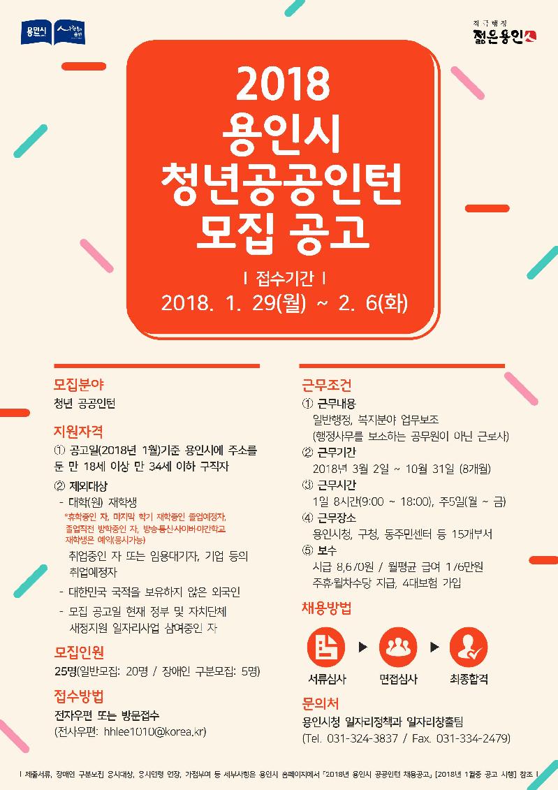 [미디어타임즈= 이옥수 기자] 용인시는 청년 구직자들에게 공공기관 근무 경력을 갖도록 하는 공공인턴 25명을 선발키로 하고 오는 29일부터 다음달 6일까지 참가자를 모집한다고 밝혔다.
