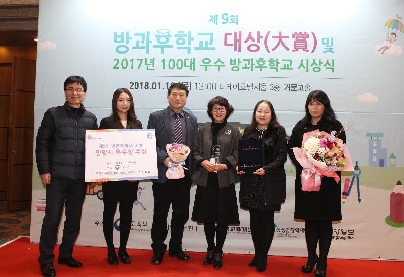 방과후 학교 대상은 학교와의 연계를 통해 방과후 학교 활성화를 위해 노력한 지방자치단체에 수여하는 상으로 안양시는 권역별 영어체험센터 지원사업이 대표적 우수 사례로 뽑혔다.