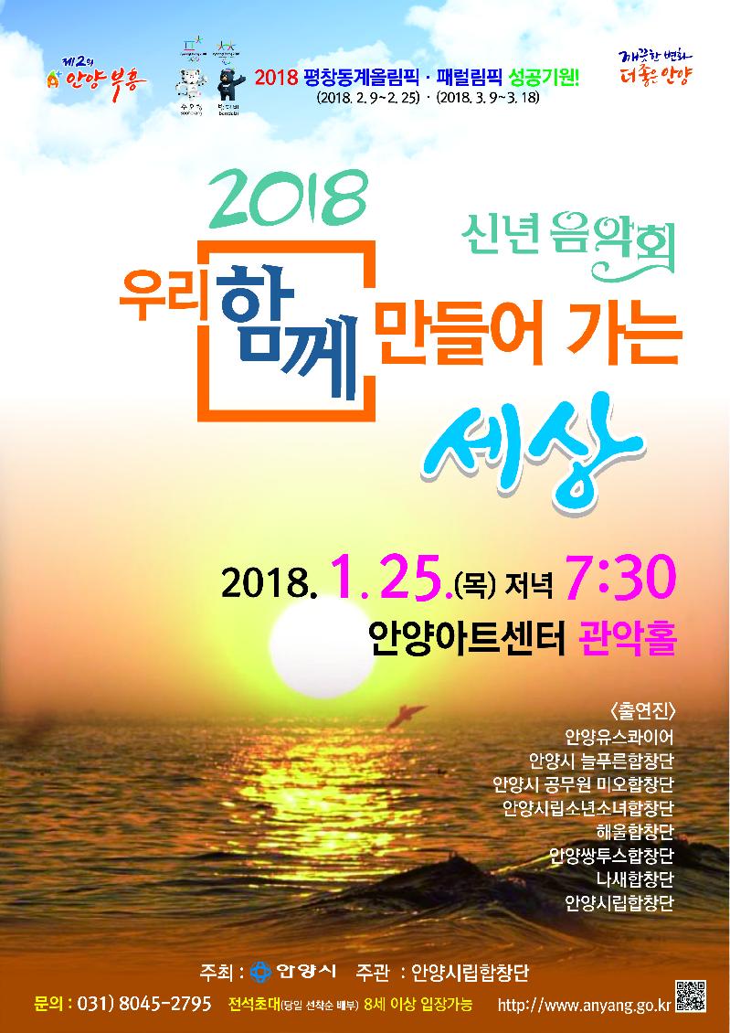 이필운 안양시장은“가족, 친지와 함께 이번 공연을 관람하면서 새해의 희망과 기쁨을 나누시기를 바라며, 무술년 한해도 수준 높은 연주와 공연을 준비해 시민들이 다양한 문화예술을 즐길 수 있는 환경을 만들어가겠다”고 말했다.
