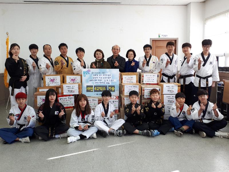 [미디어타임즈= 신훈종 기자] 안산시 와동 소재 5개 태권도장(용인대 석사 한국, 경희대 석사 효자, 경희대 장백, 신화, 고려대 타이거즈태권도)은 관내 어려운 어르신들에게 전해달라며 관원들이 십시일반 모은 라면 42박스를 와동행정복지센터에 기부했다.
