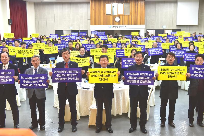 [미디어타임즈= 신훈종 기자] 안산지방법원승격추진준비위원회(위원장 김은효)와 안산시(시장 제종길), 안산시의회(시의장 이민근)가 공동으로 추진한 「안산지방법원 승격 범시민 공동추진위원회 출범식 및 시민결의대회」가 지역정치인, 학계, 재계, 시민사회단체장 등 400여명이 모인가운데 17일 오후 4시 안산상공회의소 대강당에서 성황리에 개최됐다.