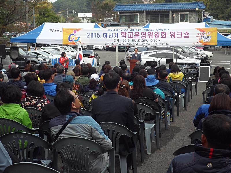 거제교육지원청은 10월 23일(금) 거제 문동폭포에서「배움이 즐거운 학교·함께 가꾸는 거제교육」실천을 위한 2015년 하반기 학교운영위원회 워크숍을 실시했다.