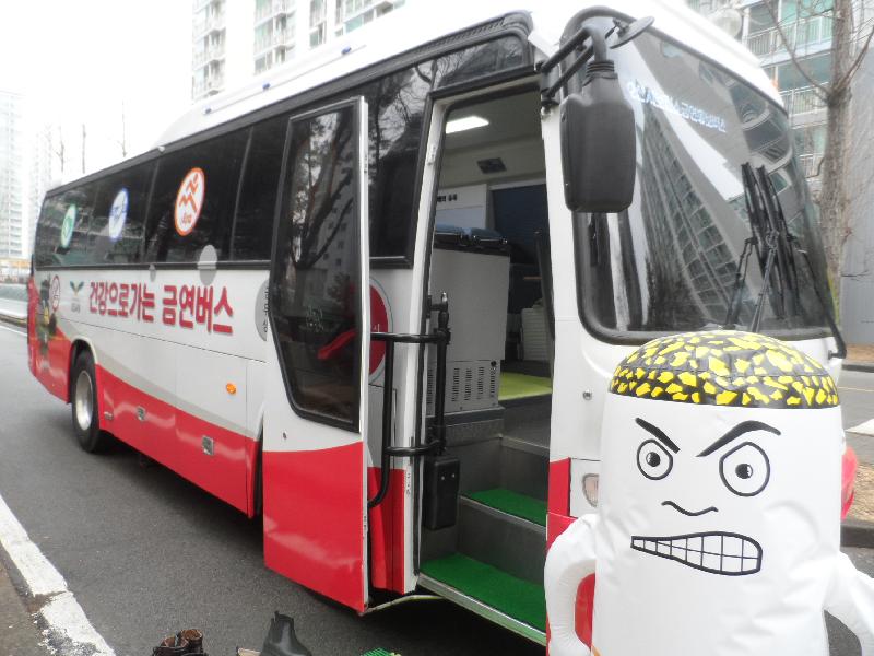 「건강으로 가는 금연버스」는 흡연예방교육을 위해 학교, 유치원, 어린이집뿐만 아니라 시간을 내기 어려운 사업장, 경로당, 대학교, 지하철역사 등 생활터별로 찾아가 무료 금연상담, 신체계측, 영양상담, 운동처방 등 포괄적인 건강서비스를 제공할 예정이다.