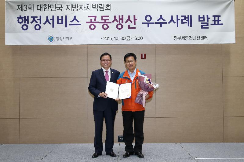 고양시(시장 최성)는 행정자치부 주관으로 개최된 제3회 대한민국 지방자치박람회에서 행정서비스 공동생산 우수사례 최우수상을, 제14회 전국주민자치박람회에서 우수상(풍산동), 장려상(대화동)을 수상하였다고 밝혔다.