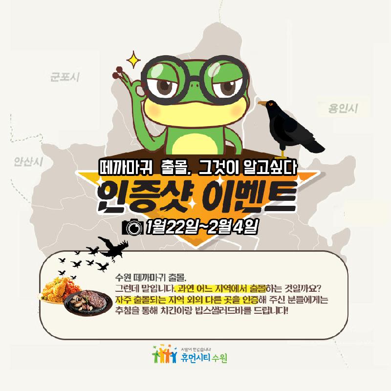-떼까마귀 사진 찍어 수원시 페이스북에 등록하면 추첨으로 선물 증정