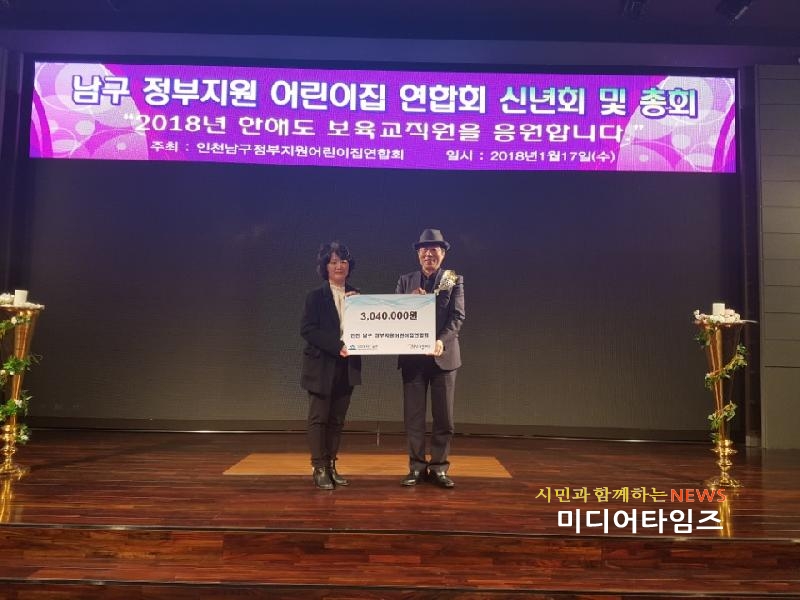 [미디어타임즈=문상수 기자] 인천 남구는 지난 17일부터 19일까지 ‘2018년 어린이집연합회 정기 총회 및 신년회’를 개최했다.정부지원·가정·민간어린이집연합회로 나뉘어 개최된 행사에는 보육 관계자들이 참석, 모범 보육교직원에 대한 표창장 수여식도 가졌다.정부지원·가정어린이집연합회 신년회에서는 회장 이·취임식도 진행됐다.정부지원과 가정어린이집에는 김인숙, 이지연 신임 회장이 취임했다.또 정부지원과 민간연합회 신년회에서는 원장과 교사들이 모금한 304만원과 350만원을 학산나눔재단에 기부하는 전달식도 진행됐다.기부된 후원금은 지역 내 저소득층 아동을 위해 사용될 예정이다.박우섭 남구청장은 “지속적인 후원금 전달을 통해 어려운 아동에 대한 나눔 실천을 해주셔서 감사드린다”며 “보육인들이 자긍심과 보람을 갖고 역할을 충실히 할 수 있도록 아이와 교사가 행복한 보육환경을 만들어가겠다”고 말했다.