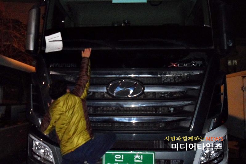 | 화물차 건설기계 밤샘 야간주차 단속 사진. <ⓒ미디어타임즈> |