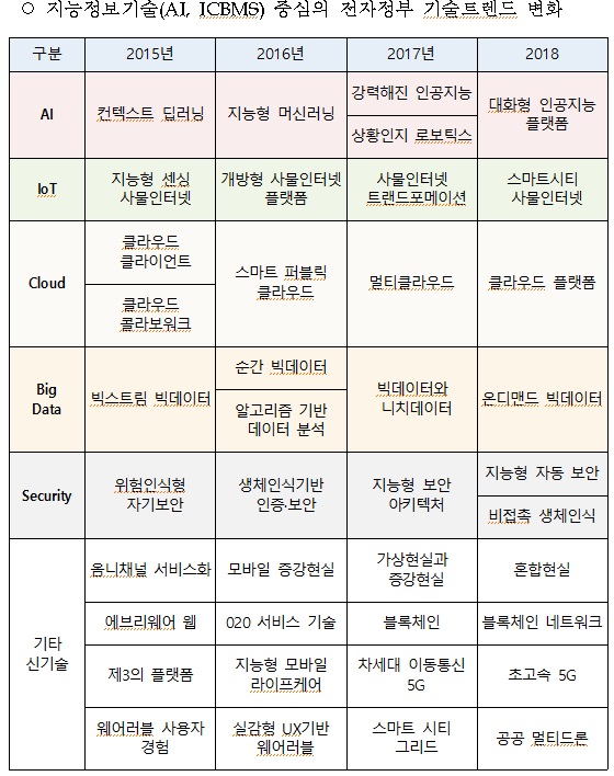 ■ 2015~2018년 전자정부 기술트렌드 비교