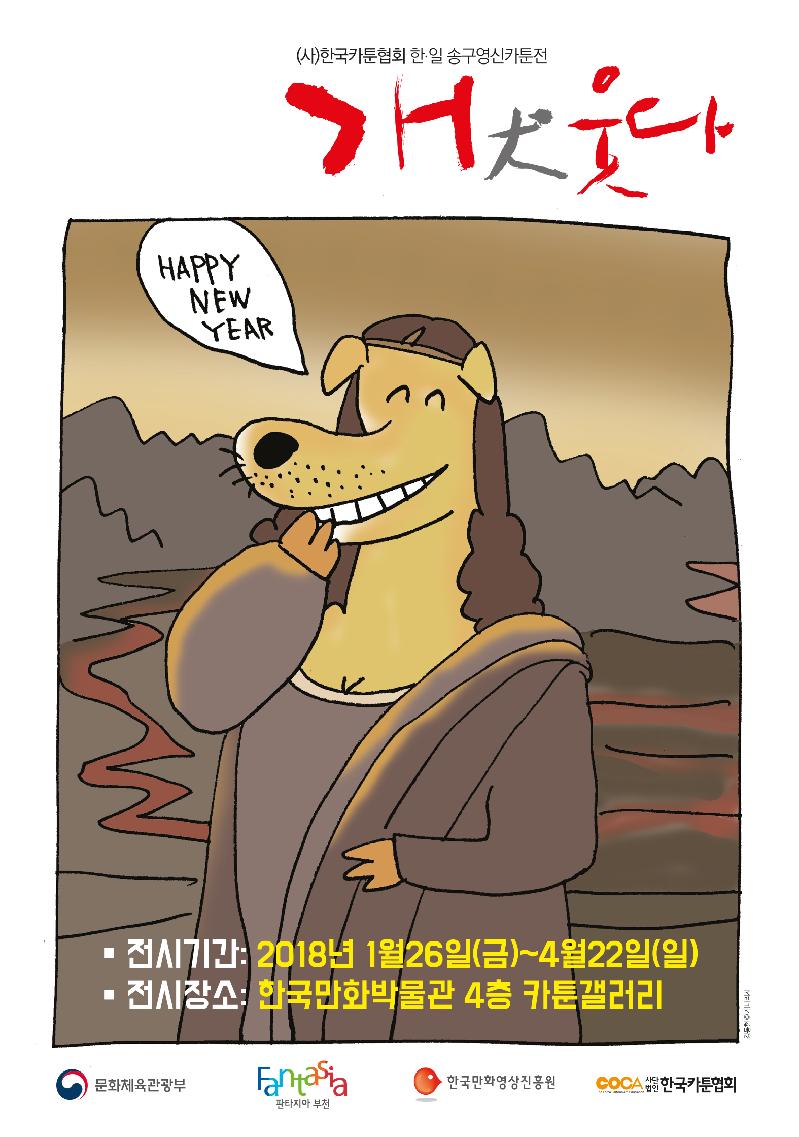 한국과 일본을 대표하는 카툰 작가들이 그린 60여 점의 카툰작품은 송구영신의 의미를 담아, 전시를 관람하는 관람객들이 개와 인간의 관계에 대해 다시 생각 해 볼 수 있는 계기를 마련한다.