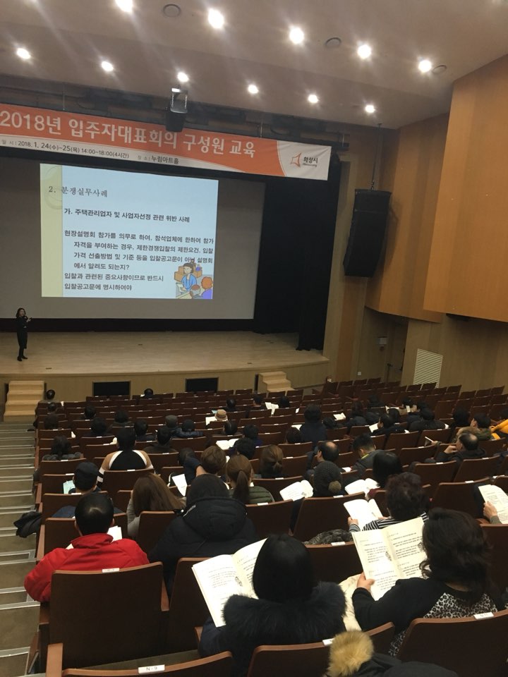 [미디어타임즈= 신훈종 기자] 화성시가 24일 누림아트홀에서 ‘2018년 상반기 입주자대표회의 구성원 교육’을 실시했다.