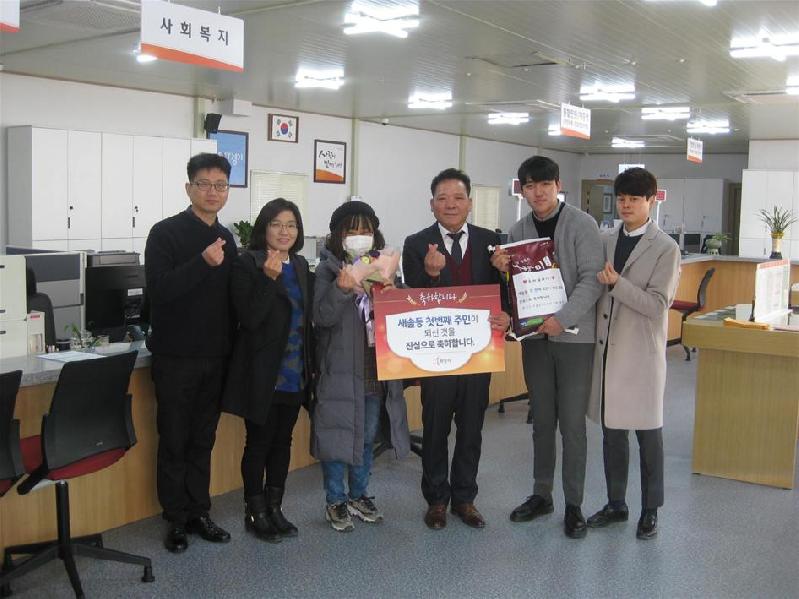 | 새솔동 첫 전입자 축하 모습. |