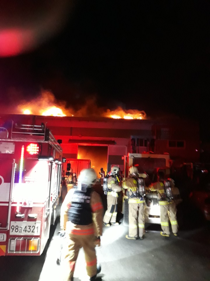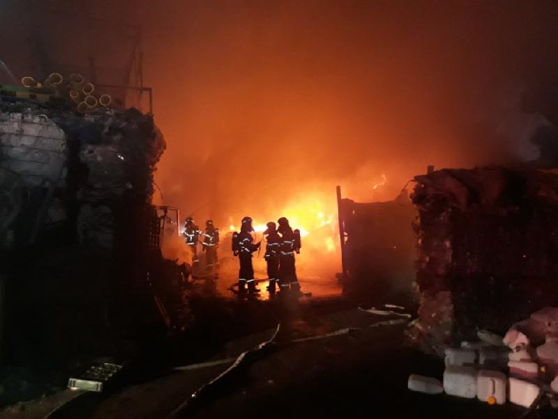 | 플라스틱 재활용처리업체 화재 진압 사진. <ⓒ미디어타임즈> |
