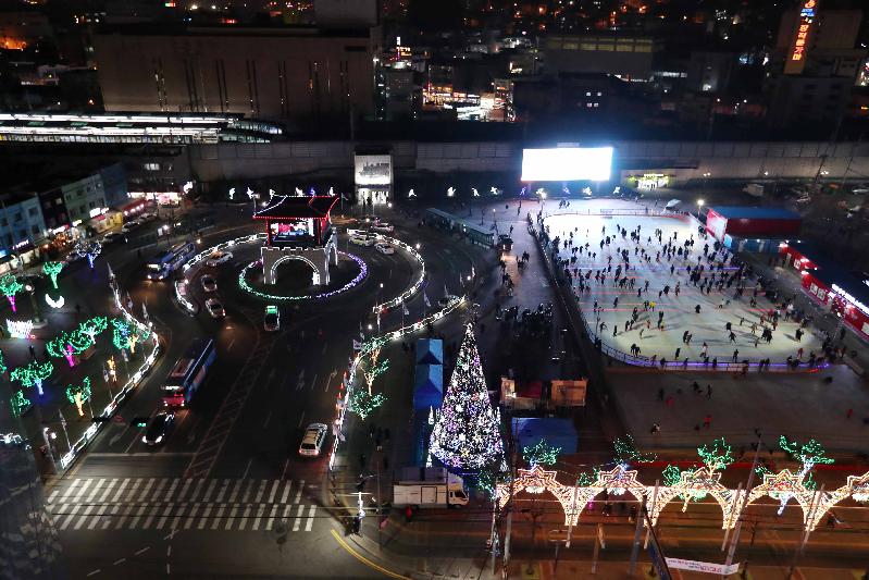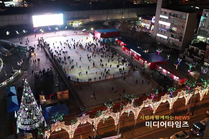 [미디어타임즈=문상수 기자] 문화관광 도시로 도약하는 인천 동구가 동인천역 북광장에 빛의 축제를 열어 주민들로부터 큰 사랑을 받고 있다. 인천 동구(구청장 이흥수)는 추운 겨울밤 연인과 가족들의 지친 마음을 따뜻한 빛의 품으로 감싸줄 직경 8m, 높이 16m의 대형크리스마스 트리를 비롯해 디자인조명, 수목조명, 루미나리에, 포토존 등 다양한 야간조명을 설치해 다양한 볼거리를 제공하고 있다. 특히, 높이 16m 대형크리스마스 앞에는 하트모양의 포토존과 평창 동계올림픽 마스코트인 수호랑 반다비 조형물을 설치해, 동인천역 북광장을 찾는 연인들과 가족들이 예쁜 사진을 찍으며 소중한 겨울 추억을 만들어가고 있다.이밖에도 스케이트장 앞을 낮처럼 뜨겁게 밝혀주는 루미나리에 조명과 아기자기한 느낌을 주는 동계올림픽 주제의 일루미네이션, 환경전광판을 비롯한 핸드레일을 수놓는 LED 등과 수목조명은 겨울밤 지친 이들의 마음에 따뜻한 온기를 내뿜어주고 있다. 또한 빛 조명은 동구의 대표적 관광명소인 동인천역 스케이트장과 인근 송현공원 달빛축제, 달빛거리 야시장과 연계되어 관광객 유치 및 지역경제 활성화에도 크게 기여하고 있다. 구 관계자는 “크리스마스 트리와 빛 조명은 오는 2월 19일까지 운영될 예정”이라며 “한파에 얼어붙은 발걸음이 북광장 주변 따뜻한 빛으로 잠시나마 가벼워지길 바란다”고 말했다.