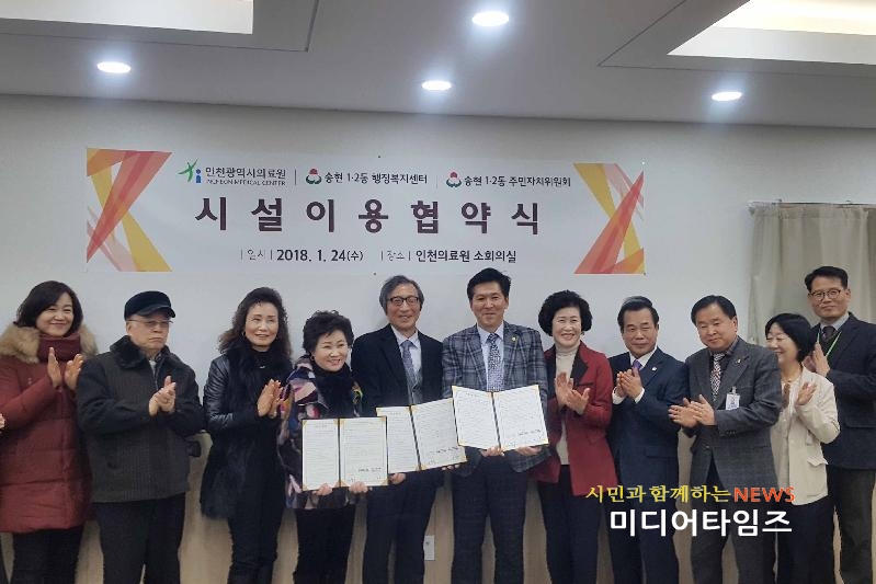 [미디어타임즈=문상수 기자] 인천 동구 송현1.2동 행정복지센터(동장 김진기)는 지난24일, 송현1.2동 주민자치위원회(위원장 조은주)와 인천광역시의료원(원장 김철수)이 저소득계층의 의료지원 및 주민의 건강지원 체계 마련을 위한 시설이용 업무협약을 체결했다.협약에서 각 기관은 저소득 소외계층의 공공의료서비스를 강화해 지역주민의 건강 증진과 사회안전망 구축으로 송현1․2동 지역주민에게 질 높은 의료서비스를 제공하는 등에 상호 노력하기로 합의하였다.협약의 주요 내용으로는 저소득 소외계층의 공공의료사업 ▲인공관절․척추․백내장 검사 및 수술을 지원(대상 : 국민기초생활수급자 및 차상위 계층) ▲유방 초음파․정밀 조직검사 무료지원(대상 : 건강보험 하위50% 이하 및 기초생활수급자 중 국민건강보험공단 검진결과 의심판정자) ▲자선량 흉부 CT무료검사 지원(대상 : 건강보험 하위 50% 및 기초생활 수급자중 55세~74세의 금연 희망자) 등의 지원사업에 적극 협조하고 지역주민 건강검진센터, 장례식장 시설이용 시 할인혜택을 받게 된다.이번 협약을 계기로 관내 저소득 소외계층의 사회안전망을 구축하고, 지역 주민의 의료비 절감 및 지역의료기관의 지역공헌 활동을 통해 나눔과 공유 문화가 확산될 것으로 기대된다.김진기 동장은 “지역의료기관의 지역공헌 활동을 통해 우리 동 주민들이 의료 혜택이 돌아가는 만큼 앞으로 적극적 홍보를 다해 주민 모두 혜택 받을 수 있도록 하겠다”고 말했다.김철수 원장은 “이번 협약을 인천광역시의료원의 질 높은 의료서비스를 제공하고 지역주민의 건강 증진을 위해 노력하겠다.”고 말했다.