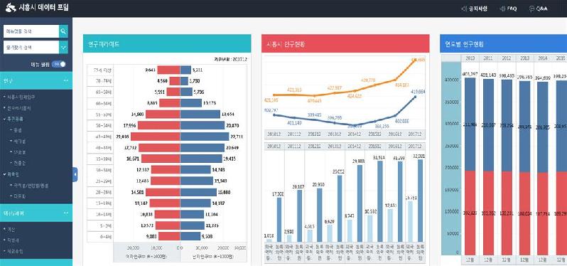 정책수립의 가장 기초가 되는 인구의 경우 직원들이 쉽고 편리하게 이용할 수 있도록 동별, 연령별, 생애주기별, 학령별, 세대별 등 다각도로 데이터를 분석하여 시각화하였으며, 데이터를 통한 마케팅적 안목과 통찰능력을 높여 시흥시 정책수립과 도시변화에 발빠르게 대처할 수 있도록 데이터 기반 정보 제공에 앞장서고 있다.