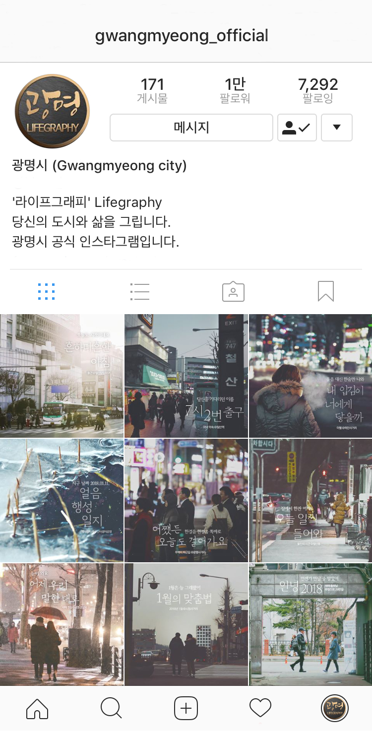 | 광명시 공식 인스타그램 프로필 화면. |