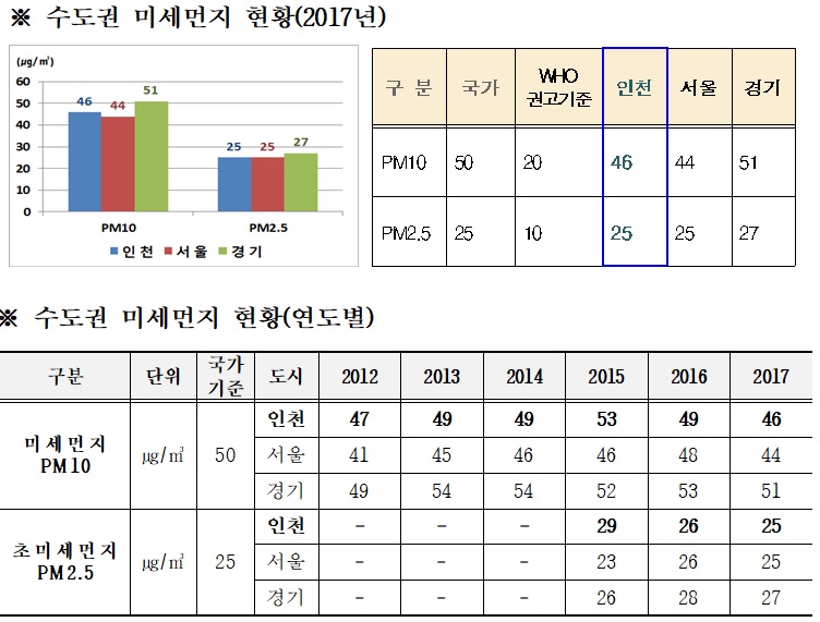 인천시는 ▲발전·산업 ▲수송 ▲생활 등 총 6개 발생원별 추진과제를 담은 ‘2020 미세먼지 저감 종합대책’을 2016년 마련해 시행하고 있다.
