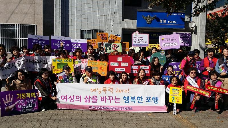 포항시와 포항시 여성폭력상담시설연합회(회장 남정임)는 10월 30일 오천시장에서 ‘여성의 삶을 바꾸는 포항’이라는 슬로건 아래 여성폭력 예방 캠페인을 실시했다.