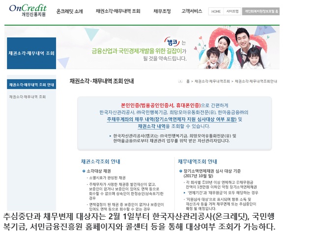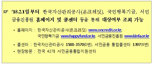 대상자는 한국자산관리공사(온크레딧), 국민행복기금, 서민금융진흥원 홈페이지 및 콜센터에서 새달 1일부터 조회 가능하다.