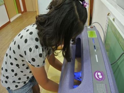 손씻기 체험기기는 형광로션을 손에 바르고 검사스크린에 넣으면 형광물질이 하얗게 보이는 기구로, 형광물질을 세균이라고 가정하고 평소 습관대로 손을 씻고 나서 세균이 얼마나 제거되는지 눈으로 확인할 수 있기 때문에 올바른 손씻기 실천의 중요성을 직접 확인하고 체험할 수 있다.