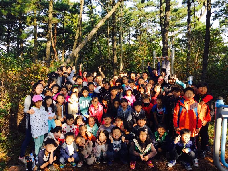 오전 9시 학교 운동장에 모인 오량 어린이들은 준비운동 후 친구들과 발걸음을 맞추어 시래산을 오르며 가을의 풍경을 마음껏 눈에 담았다.
