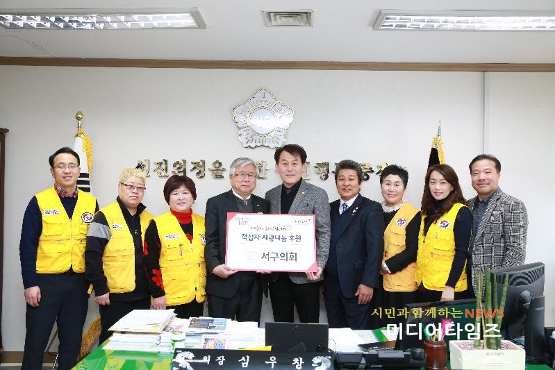 [미디어타임즈=문상수 기자] 인천광역시 서구의회(의장 심우창)는 31일 오전 집무실에서 대한적십자사 인천지사 이경호 회장을 비롯한 관계자들을 접견하고 적십자 특별회비 100만원을 전달했다.심우창 서구의회 의장은 이 자리에서 대한적십자사 인천지사의 노고를 격려하고 “적십자는 어둠을 밝히는 등불이라고 슈바이처 박사가 말했듯이, 대한적십자사는 우리나라의 크고 작은 재난과 사고현장에서 등불과 같은 역할을 수행해 왔으며, 앞으로도 소년소녀가장·독거노인·장애인 등 소외되고 어려운 이웃들에게 폭넓은 복지사업을 전개하며 따뜻한 사회를 만드는데 소중한 밑거름 역할을 해주시길 바란다”고 당부했다.또한 “이재민 구호활동, 취약계층 긴급지원 등 다양한 인도주의 활동에 소중하게 사용되는 만큼 많은 구민들이 올해도 지속적으로 적십자 회비 모금에 동참해 주시기 바란다”고 말했다.