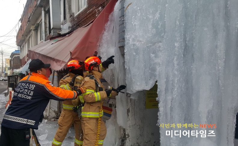 | (대형 고드름 제거 사진. <ⓒ미디어타임즈> |