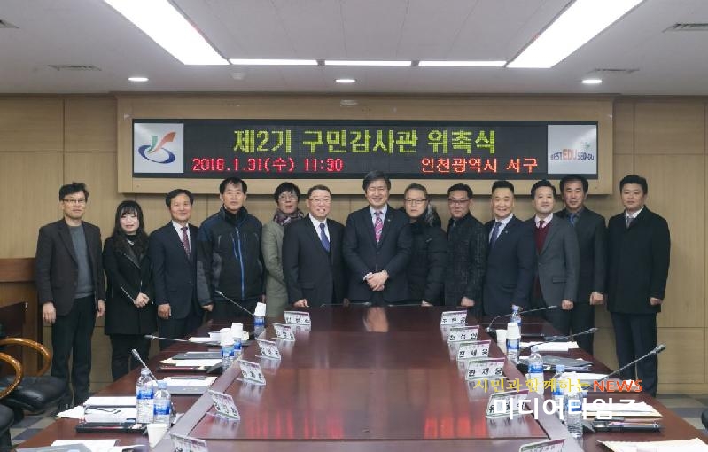[미디어타임즈=문상수 기자] 인천시 서구(구청장 강범석)는 1월 31일 구민의 구정참여 기회를 확대하고 감사의 투명성을 확보하기 위해 주민 14명을 제2기 구민감사관으로 위촉했다. 이번 제2기 구민감사관은 세무, 회계, 위생, 복지, 교육, 법조 등 분야별 전문가로서 구민의 신망이 높고 행정에 대한 식견과 경험이 풍부한 주민으로 구성됐다. 이들은 앞으로 2년 동안 구 자체감사활동 참여, 주민불편사항에 대한 시정 건의, 위법·부당한 행정사항 및 공무원 부조리 신고, 불합리한 법령 및 행정제도 개선 건의 등의 역할을 하게 된다.한편, 2016년 1월부터 활동한 제1기 구민감사관은 지난 2년간 구 자체감사에 참여하여 8건의 개선사항을 제안했으며, 도로파손, 보안등 고장 등 40건의 불편사항을 제보·개선하는 등 ‘함께 만드는 내일, 든든하고 편한한 서구’를 만드는데 크게 이바지했다. 강범석 서구청장은 “앞으로 구민의 시각에서 구정을 점검하는 구정의 동반자로서 역할을 당부드린다”며, “구민감사관의 적극적인 활동 지원을 통해 주민참여 행정에 한 발짝 다가가는 투명하고 공정한 ‘청렴서구’ 구현하는데 최선을 다할 것”이라고 말했다.