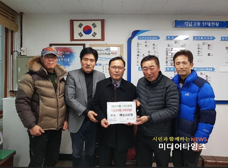 [미디어타임즈=문상수 기자] 착한사람들 모임회(회장 노광호)는 1월 31일 석남2동의 어려운 가정을 위한 이웃사랑 후원금 60만원을 석남2동 지역사회보장협의체에 기탁했다.경기침제로 인한 어려운 여건 속에서도 회원들이 마련한 소중한 후원금은 석남2동지역사회보장협의체 특화사업 및 저소득층 가정의 생활 안정을 위해 쓰일 예정이다. 자영업자, 직장인 등 10명의 회원으로 구성된 착한사람들 모임회는 2001년에 발족하여 소년소녀가장, 조손가정 등에 장학금, 생활비 등을 지원해 왔다. 또한, 관내 단체나 기관 등에도 생활물품 및 식품을 수시로 후원하는 등 주위의 어려운 이웃들을 위해 사회공헌활동을 꾸준히 하고 있다.노광호 회장은 “작은 정성이지만 이번 이웃사랑 나눔을 통해 생활이 어려운 이웃들이 훈훈한 설 명절을 보냈으면 좋겠고, 점점 각박해져가는 사회에 조금이나마 따뜻한 마음을 전하고 싶다”고 말했다.윤병선 석남2동장은 “어려운 경제 환경 속에서도 작은 정성을 모아 나눔을 실천하고자 하는 회원들께 감사드리며, 앞으로도 지역사회 나눔 문화 확산을 위해 앞장서 주시기 바란다”고 전했다.