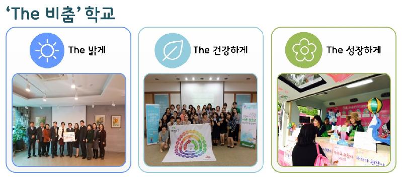 ‘The 비춤’ 학교는 ▲대시민과 소통하는 범시민운동 ‘The 밝게’, ▲치료비 지원 ‘The 건강하게’, ▲집중관리 ‘The 성장하게’로 구성돼 있으며 아동·청소년 마음건강의 중요성에 대한 인식개선 활동에서부터 정신건강문제 조기 발견 및 장기적·집중적 치료까지 지원하는 사업이다.