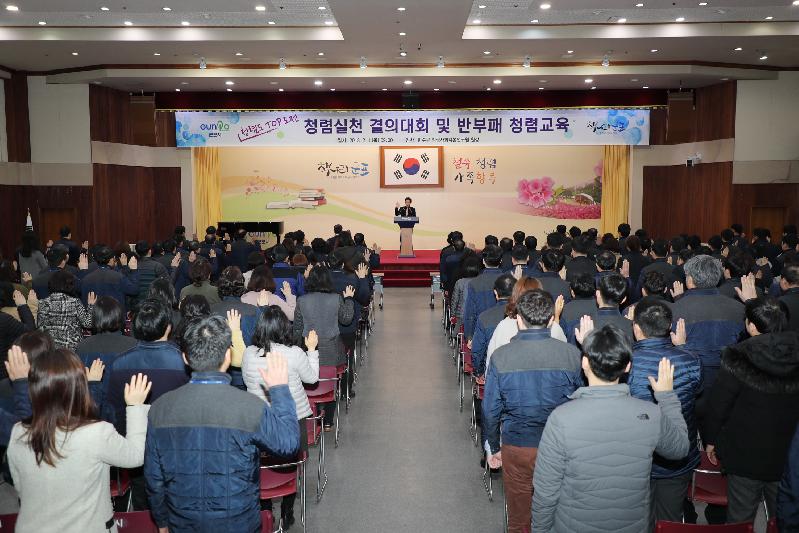 청렴시책은 5개 분야 19개 중점과제로 이뤄졌으며, 시는 먼저 공직윤리관 재정립을 통해 공직사회 내부에서부터 실질적인 변화의 바람을 일으키고자 2월 1일 시청 대회의실에서 ‘청렴실천 결의대회’를 개최했다.