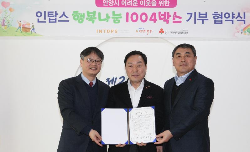[미디어타임즈= 신훈종 기자] 안양시(시장 이필운)는 지난 달 31일 시청 접견실에서 인탑스(주)·경기사회복지공동모금회와 소외계층 지원을 위한‘행복나눔 1004박스’기부 협약을 체결했다고 밝혔다.
